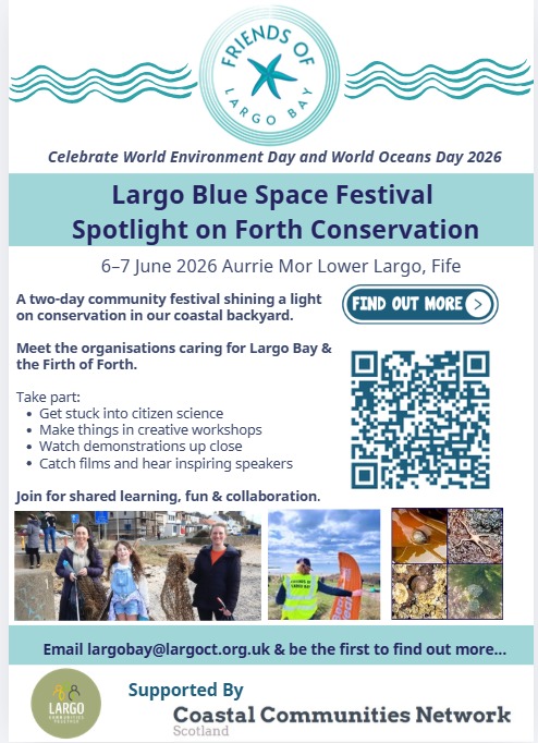 A two-day community festival shining a light on conservation in our coastal backyard. Come along and meet the organisations caring for Largo Bay and the Firth of Forth. Take part in citizen science, creative workshops and demonstrations. Join us for films, shared learning, fun and collaboration. We welcome individuals, families and groups.